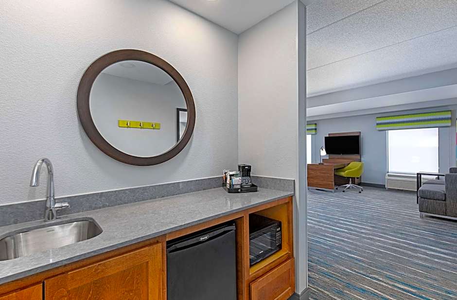 This mobility and hearing accessible, non-smoking room features one king-sized bed, and an accessible roll-in shower. The room also has a visual alarm and notification devices for the doorbell or door knock and incoming phone calls. The room features comfortable soft seating, microwave, refrigerator, a HDTV, and easy to operate alarm clock/radio. The free WiFi access will help you stay connected while on the road. If you prefer not to work at the desk, you can use the convenient lap desk instead. You'll also enjoy the convenience of having a coffeemaker with tea service and iron/ironing board in your room. Any corresponding photo may not reflect the specific accessible room type or room feature.